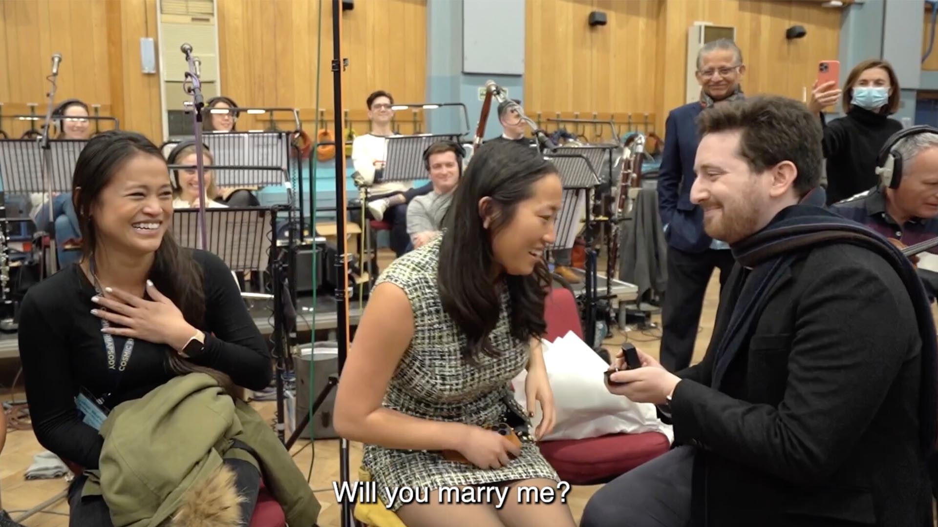 But just as the animated journey feels it’s losing its gravity, the film transitions to its true core. We are transported to the hallowed halls of Abbey Road Studio One, where the music comes to life. Here, the film peels back the layers of fantasy to reveal the deeply personal genesis of the score. The songwriters, Christina Teenz Tan and Ron Josef Danziger, step into the frame, and the film’s abstract question finds a tangible, breathtaking answer.